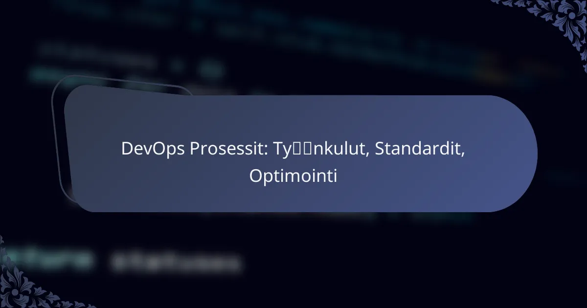 DevOps-prosessit yhdistävät kehitys- ja operatiiviset tiimit, mikä mahdollistaa tehokkaammat työnkulut. Näiden prosessien optimointi keskittyy pullonkaulojen tunnistamiseen ja oikeiden työkalujen valintaan, jotta tiimit voivat toimia sujuvammin ja tehokkaammin. Standardit ja kehykset, kuten ITIL ja Agile, tarjoavat rakenteita ja parhaita käytäntöjä työnkulkujen parantamiseksi.