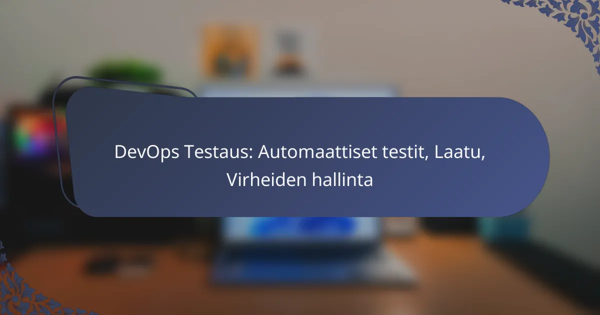 DevOps-testaus yhdistää ohjelmistokehityksen ja IT-toimintojen käytännöt, keskittyen jatkuvaan testaamiseen ja laadunvarmistukseen. Tämä lähestymistapa parantaa ohjelmistojen laatua ja nopeuttaa julkaisuja, mikä on tärkeää nykypäivän kilpailullisessa ympäristössä. Automaattiset testit, kuten yksikkö- ja integraatiotestit, varmistavat ohjelmiston toimivuuden eri kehitysvaiheissa ja tukevat virheiden hallintaa tehokkaasti.