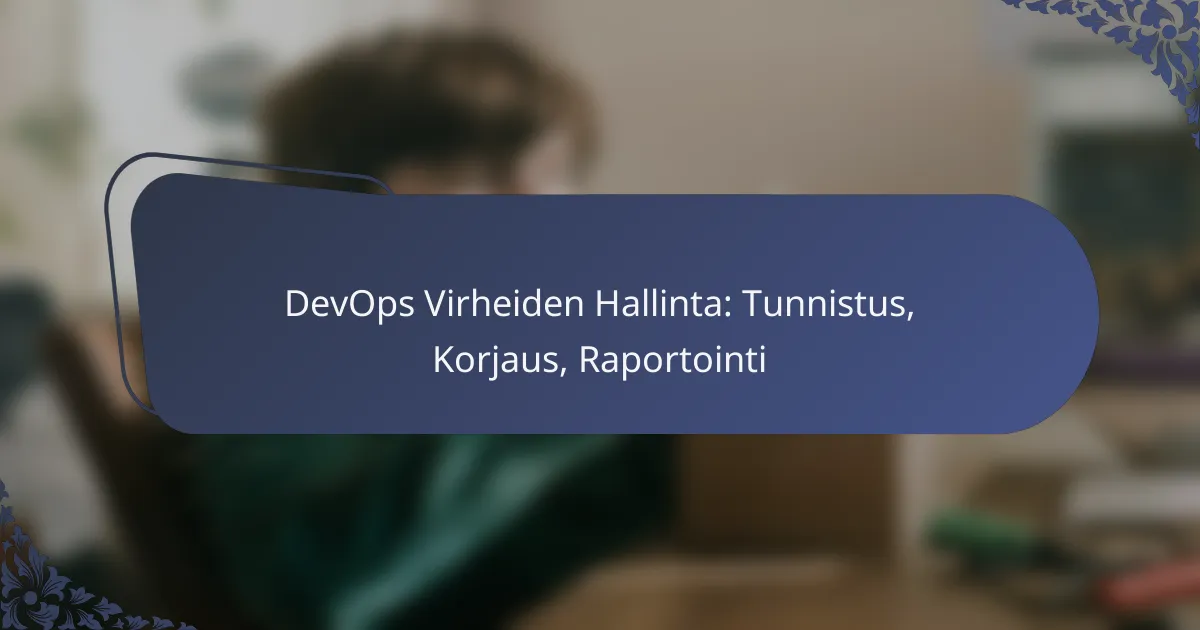 DevOps-virheiden hallinta on olennainen osa ohjelmistokehitystä, keskittyen virheiden tunnistamiseen, korjaamiseen ja raportointiin. Tehokkaat prosessit ja strategiat parantavat ohjelmistojen laatua ja nopeuttavat kehitystä, mikä on tärkeää nykyaikaisessa kehitysympäristössä. Tunnistamisen ja korjaamisen menetelmät, kuten monitorointi ja vianetsintä, ovat avainasemassa virheiden ehkäisemisessä ja hallinnassa.